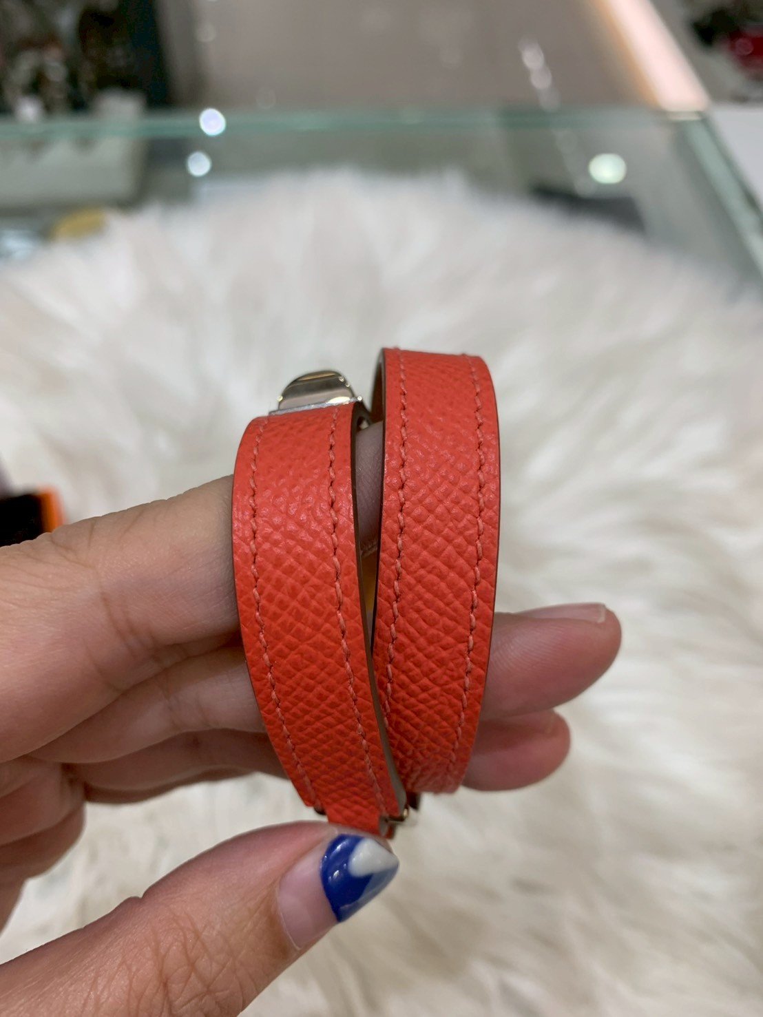 Hermes RIVALE DOUBLE TOUR BRACELET RED PHW SIZE S STAMP T