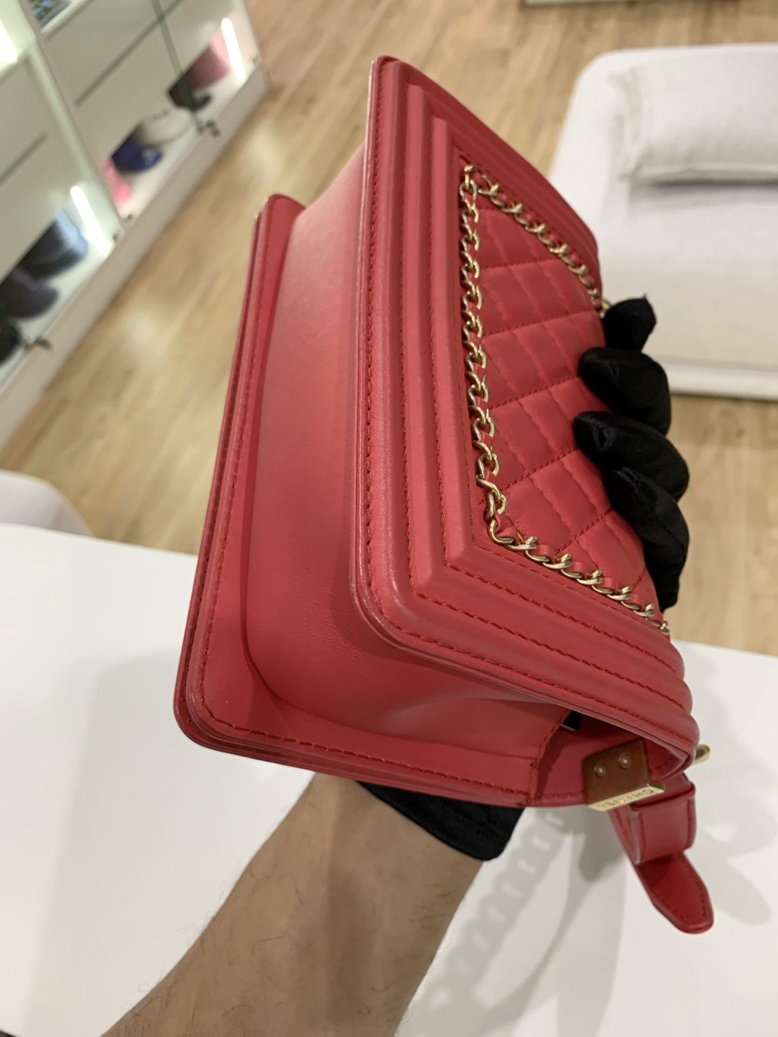 Chanel BOY 8 RED CALF GHW HOLO29179361