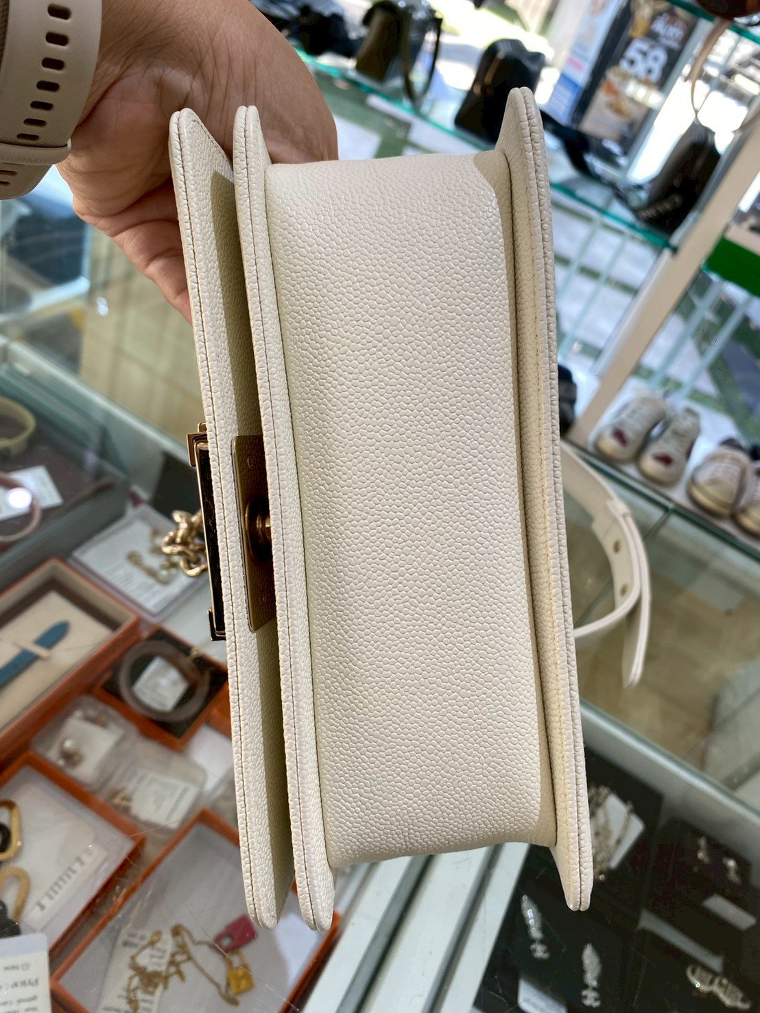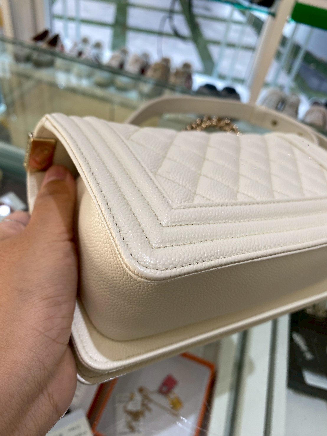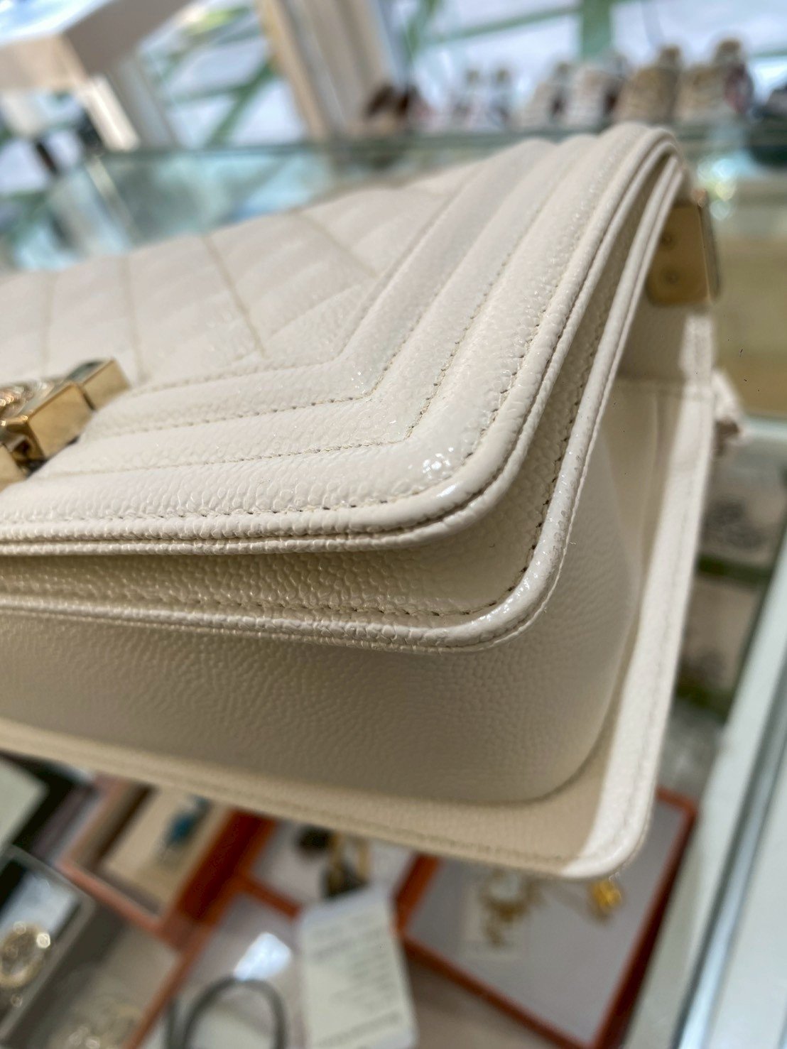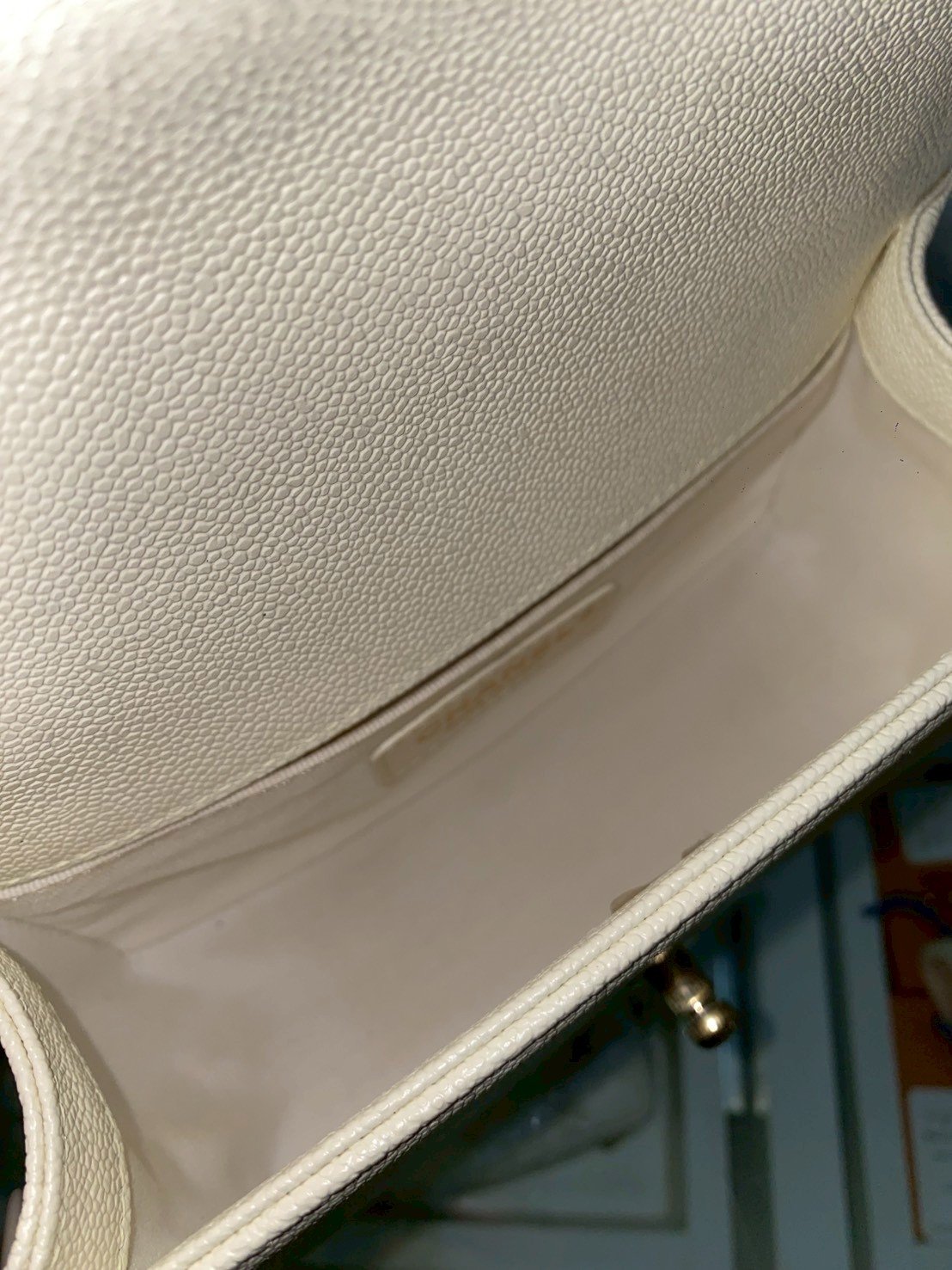 Chanel BOY 8” WHITE CAVAIR GHW MICROCHIP