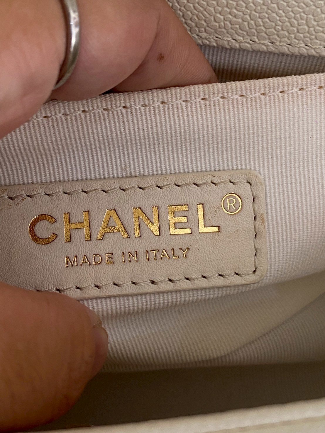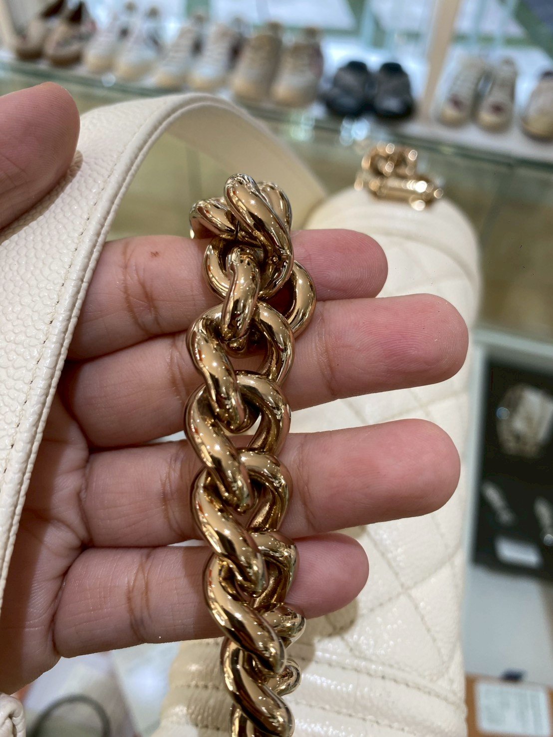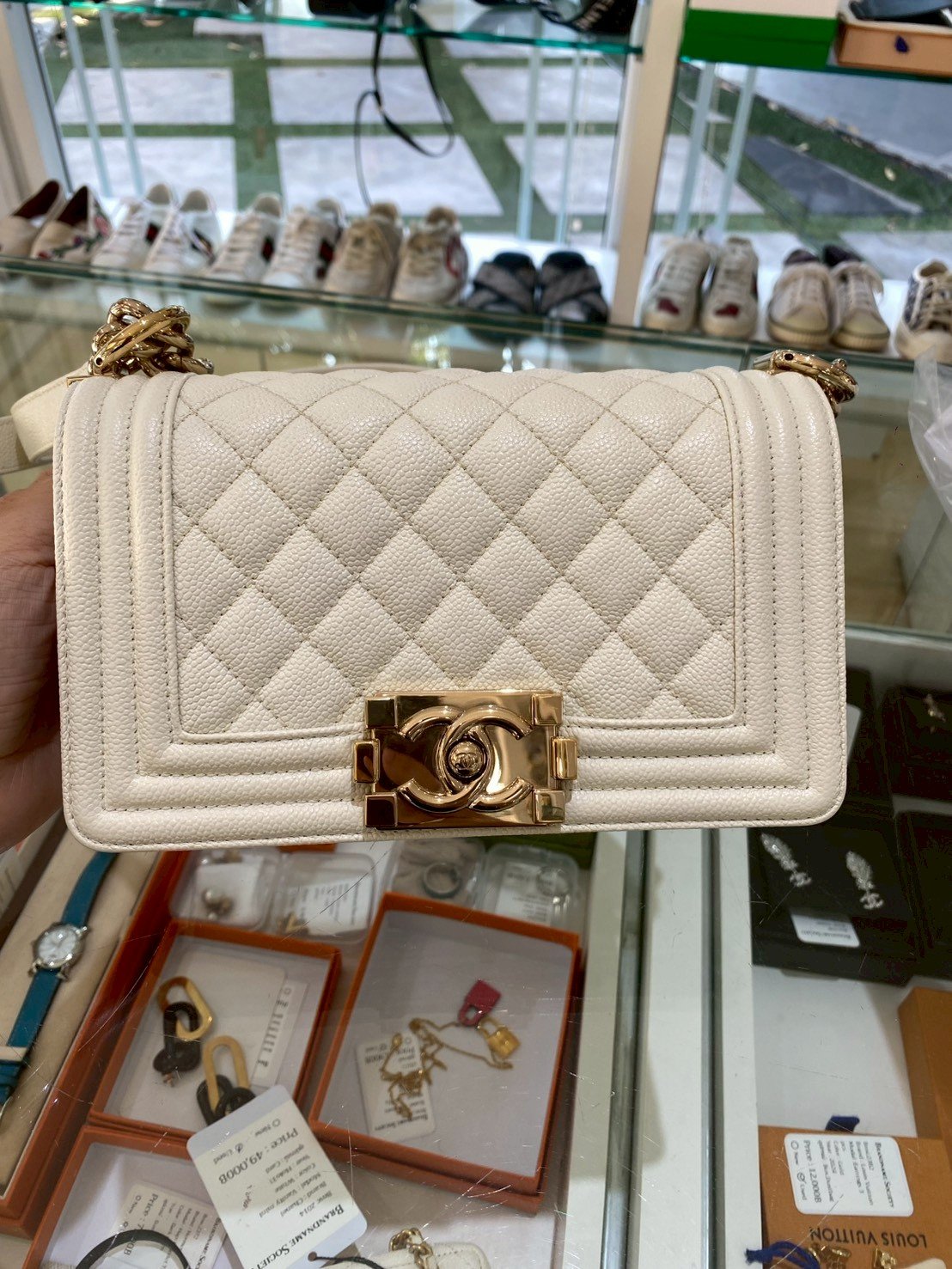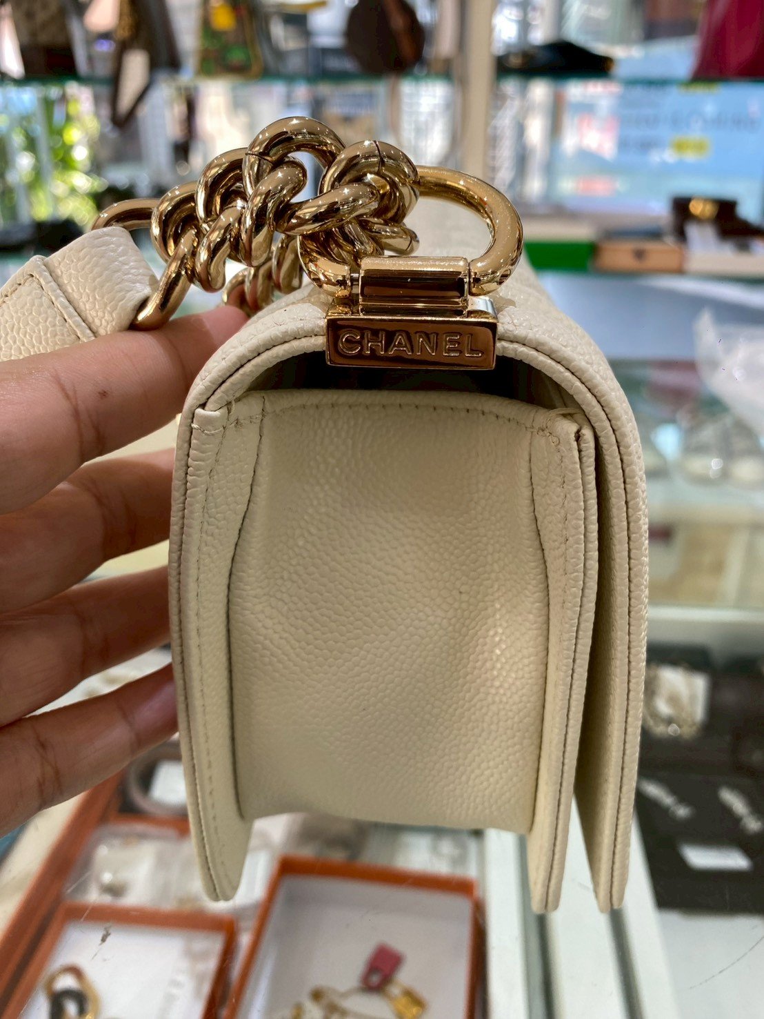 Chanel BOY 8” WHITE CAVAIR GHW MICROCHIP