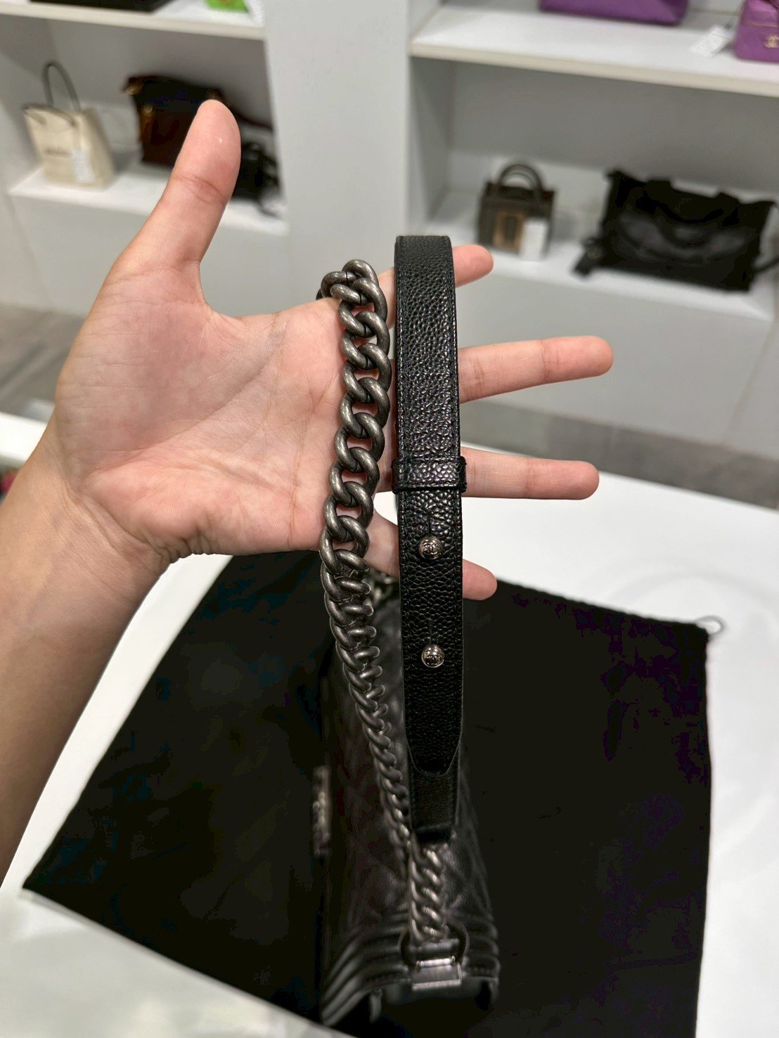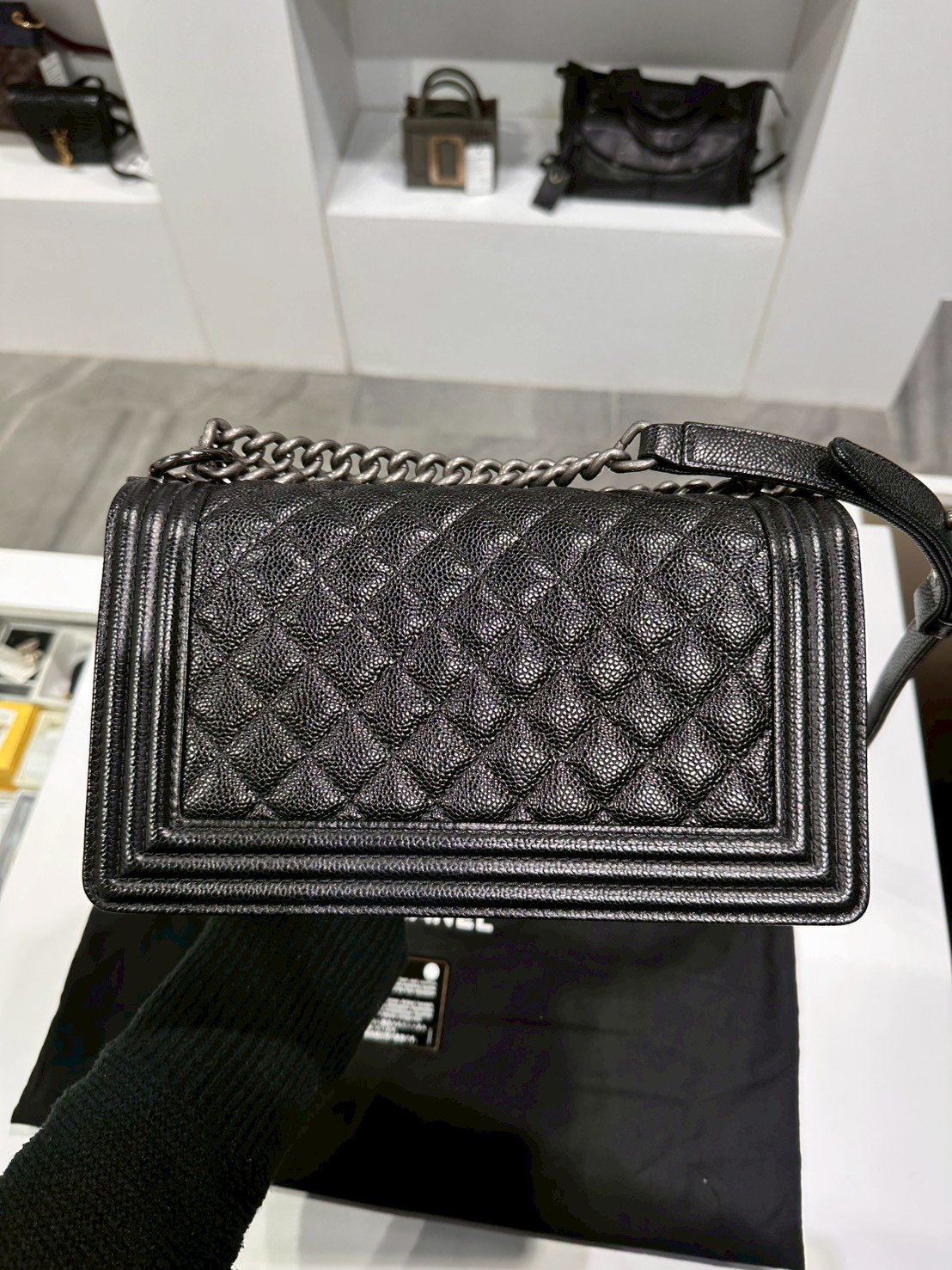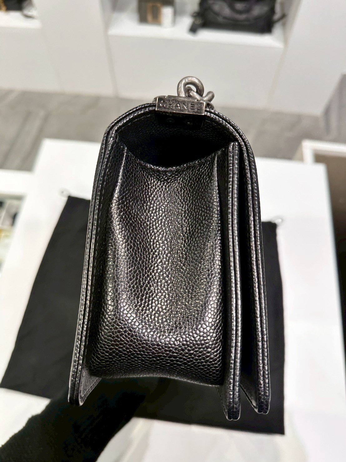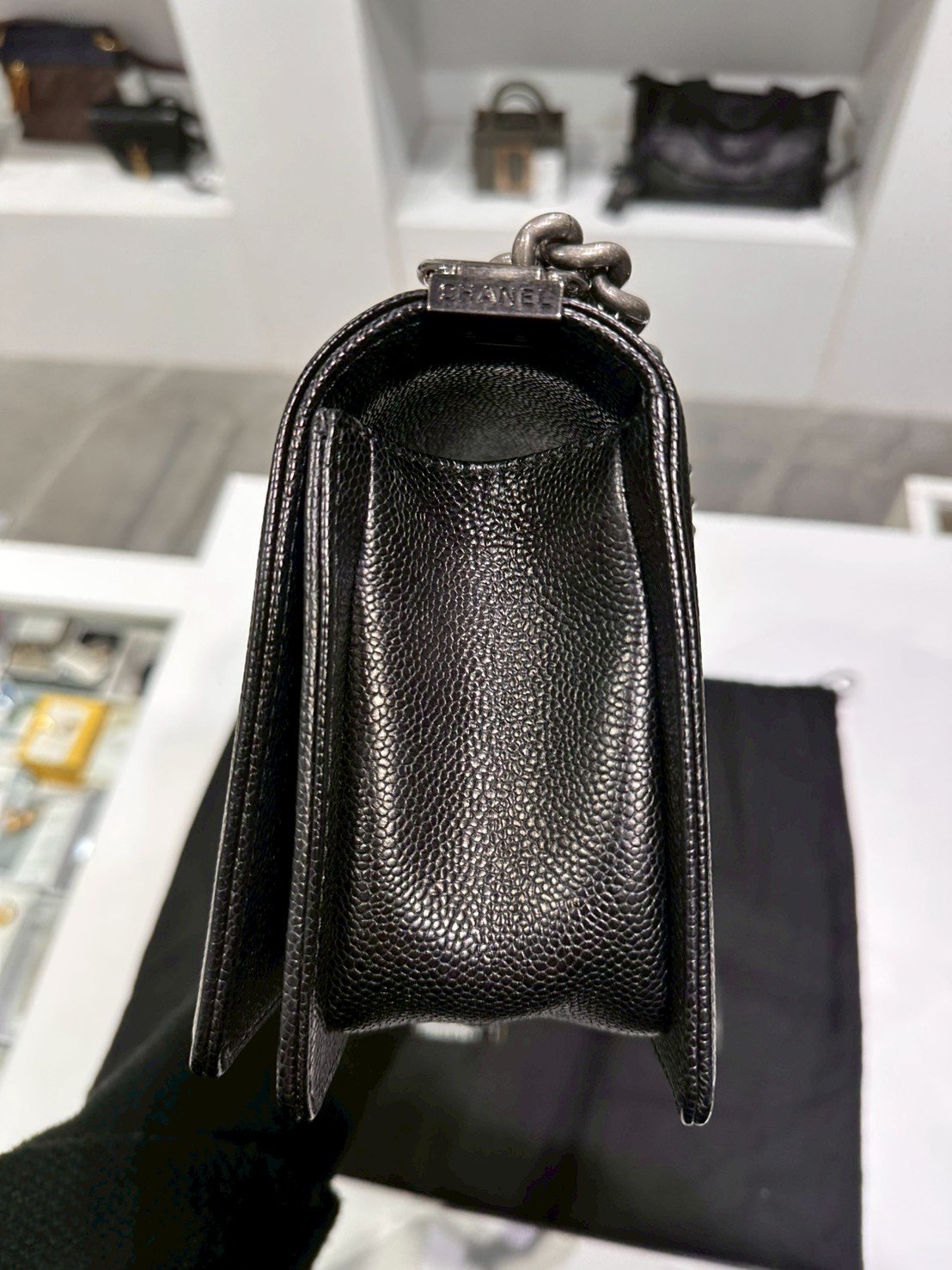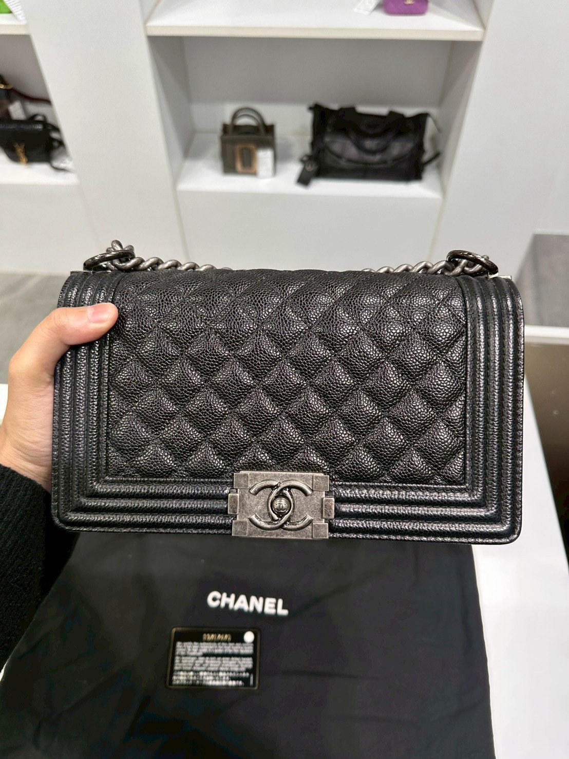 Chanel BOY 10" BLACK CAVIAR RHW HOLO 19